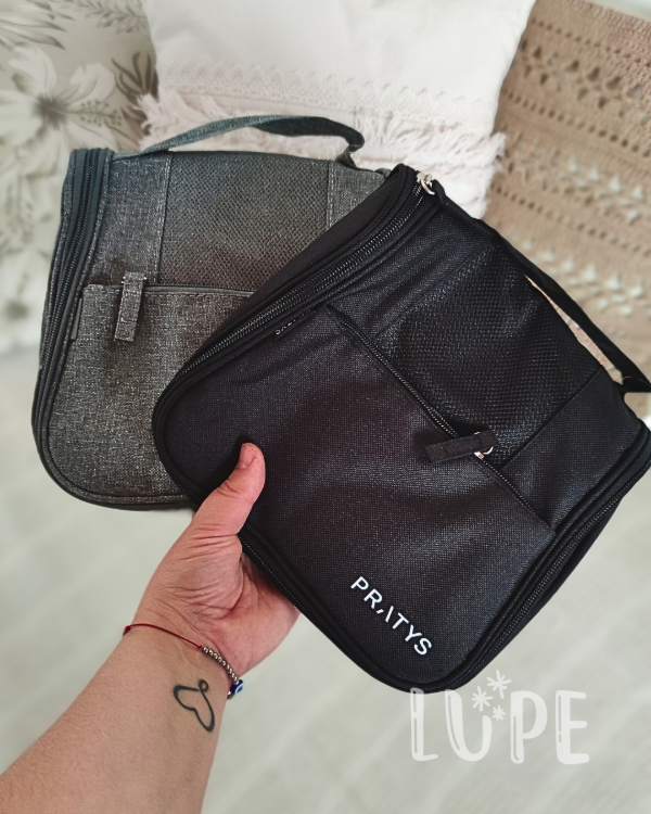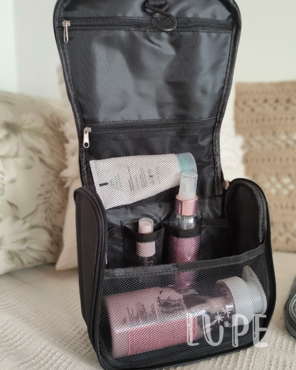 Este neceser porta cosméticos es ideal para viajes o para el hogar. Su amplia capacidad permite guardar de todo cosméticos, perfumes, cremas, brochas y demás.También contiene 2 bolsillos internos, uno de ellos con tela de red para mantener todo en un vistazo. No ocupa mucho lugar y además tiene un gancho en su parte superior para colgarlo y así brindar mayor comodidad.