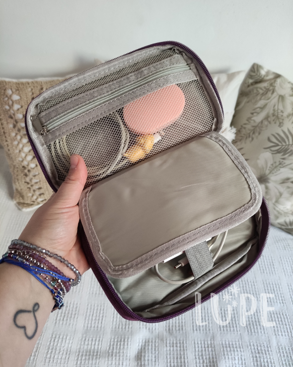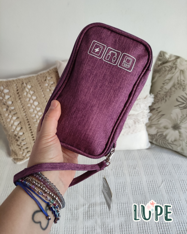 Contiene 8 divisiones con elástico para que organices tus cables de manera eficiente y un bolsillo de red para que puedas guardar tus pendrive, fuentes, tarjetas de memoria o cualquier objeto pequeño